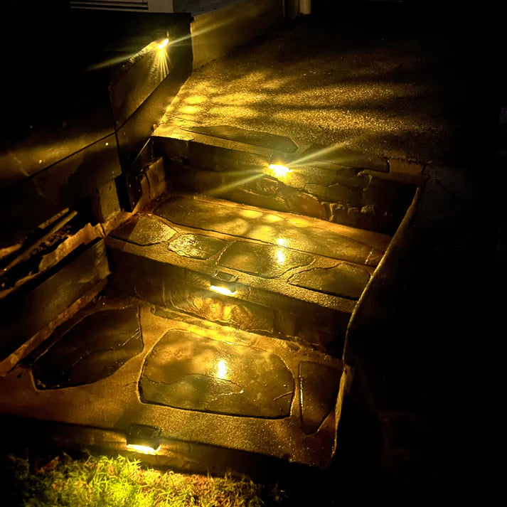 מנורות המדרגות הסולאריות שלנו מוסיפות תאורה עדינה שמדגישה את המדרגות, השבילים והגדר – ומשדרגת מיד את המראה של הבית והגינה בלילה.